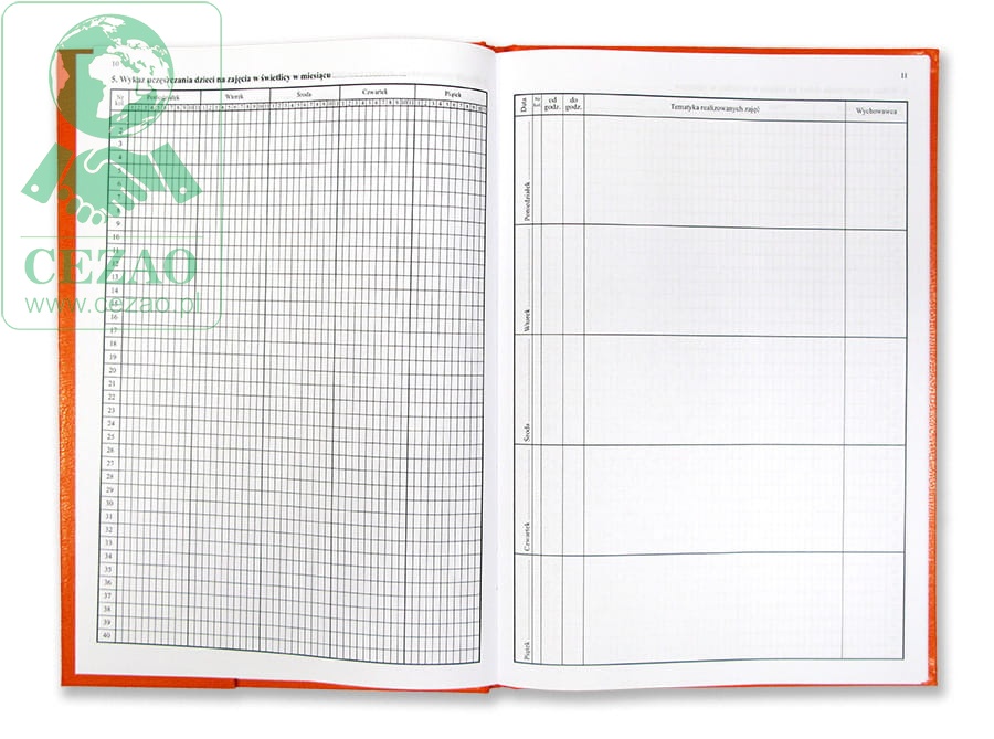 (odnotowuje się obecność dzieci na poszczególnych godz. zajęć w danym dniu - na 11h)