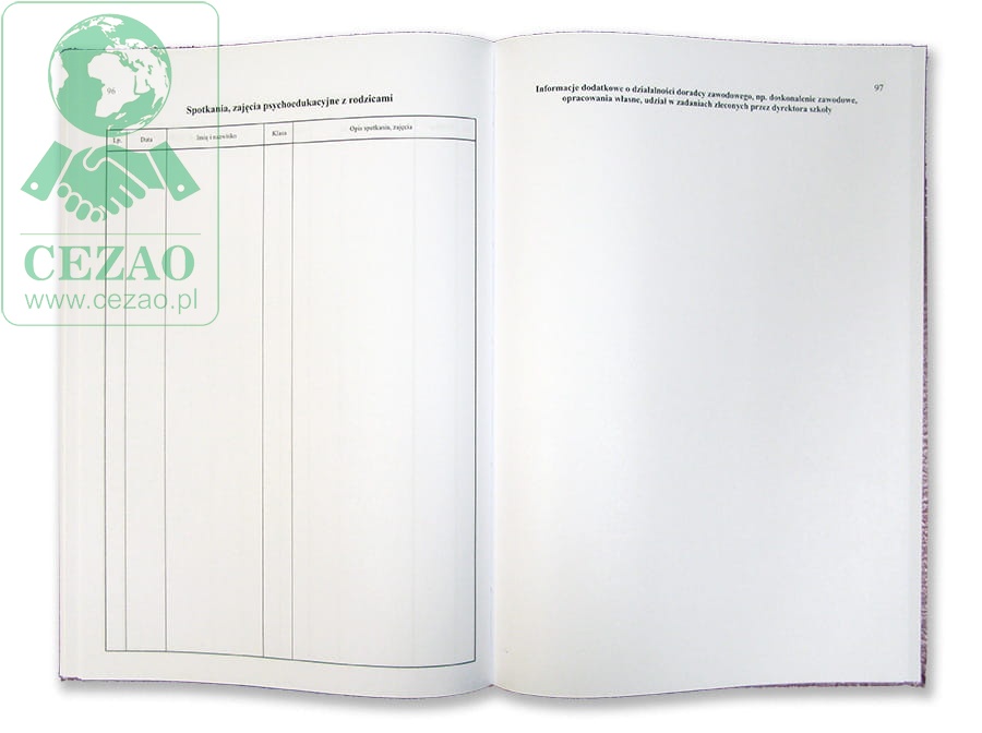 Dziennik zajęć doradcy zawodowego, A4 (100 str.), twarda oprawa skóropodobna, szyty.