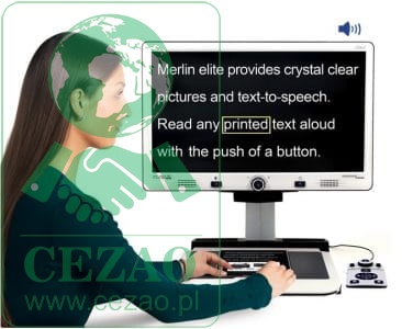 Merlin Elite HD OCR to wysokiej jakości powiększalnik stacjonarny wyposażony w monitor FullHD i funkcję czytania tekstu OCR. Kolor i kontrast w wysokiej rozdzielczości zapewniają piękny, wyraźny obraz i „żywe” kolory. Wyjątkowy design powiększalników Elite umożliwia szerokie pole widzenia. Poczuj radość z czytania dzięki nowej funkcji mowy. Merlin Elite HD OCR dostępny jest również w wersji PRO, umożliwiającej rozpoznanie OCR całej strony A4. Szczegóły dostępne u Sprzedawcy. Funkcje: Sony® Full HD auto focus kamera monitor 24” HD LCD w wysokiej rozdzielczości (1920 x 1080) powiększenie w zakresie 2.4 do 70x funkcja mowy w języku polskim i w innych językach autofokus funkcja podkreślników linii, przysłon i znaczników kolumn ułatwiających czytanie tekstu 28 trybów kontrastu, koloru i jasności Text-to-Speech (OCR) – funkcja rozpoznająca znaki i odczytująca test na głos w języku polskim podświetlanie aktualnie czytanego tekstu (wyrazów) udźwiękowione menu w języku polskim i w innych językach łatwa w obsłudze konsola do obsługi powiększalnika, umożliwiająca regulację jasności wielkości powiększenia, trybu koloru, zaawansowane funkcje czytania tekstu, głośności zapisywania obrazu w pamięci itp. możliwość dostosowania kąta nachylenia monitora w pionie i w poziomie podświetlenie LED możliwość zamrożenia obrazu i zapisania zdjęć w pamięci USB złącze VGA – możliwość podłączenia do komputera i wykorzystania monitora Merlin Elite jako monitora komputerowego ruchomy stolik XY z możliwością zablokowania pozycji wbudowane głośniki wejście jack 3.5mm – możliwość podłączenia słuchawek wymiary: 70.5 cm wys. x 57.8 cm szer. x 50.8 cm gł. waga: 18.2 kg zasilanie sieciowe w zestawie: Merlin Elite HD OCR, konsola, zasilacz, ściereczka.
