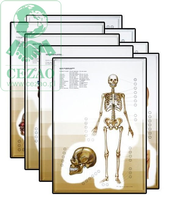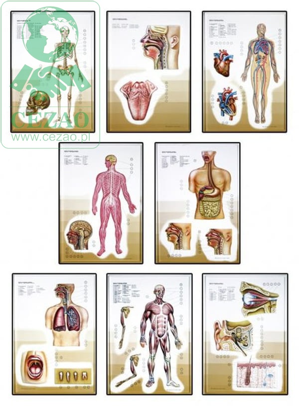 Tłoczone tablice edukacyjne są bardzo przydatną pomocą dydaktyczną. Ta profesjonalnie przygotowana pomoc dydaktyczna pozwala nauczycielom, na prezentowanie uczniom wybranych zagadnień z zakresu anatomii człowieka; zestaw zawiera 8 plansz i obejmuje tematykę budowy: szkieletu, narządów zmysłów i układów mięśniowego, krwionośnego, nerwowego, pokarmowego i oddechowego. Odpowiednio przygotowana kolorystyka i forma ułatwia zapamiętanie informacji.