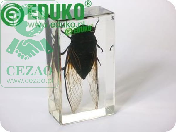Cykadowate, piewikowate (Cicadidae) to rodzina pluskwiaków, powszechnie nazywanych cykadami lub piewikami. Na okazie cykady zatopionym w pleksi możemy zaobserwować tymbale u nasady odwłoka (narządy do wydawania dźwięków), około 4-centymetrowe, przezroczyste i wyraźnie żyłkowane skrzydła, szeroko rozstawione oczy oraz krótkie czułki. Dzięki temu produktowi uczniowie mogą zapoznać się z ciekawym, niewystępującym w Polsce gatunkiem. Preparat w pleksi pozwala na bliską obserwację zatopionego w nim obiektu pod każdym kątem przez wiele lat - jest trwały, przejrzysty i estetycznie wykonany.