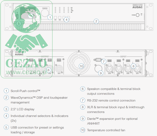 SMQ to seria czterokanałowych wzmacniaczy mocy, wprowadzających nowy standard wśród niedrogich wzmacniaczy audio, opracowanych z myślą zarówno o stacjonarnych, jak i tymczasowych instalacjach nagłaśniających. Ich zaawansowane funkcje i dostępność w wariantach o różnych mocach wyjściowych – 350 W, 500 W, 750 W i 1250 W – stanowią o ich ogromnej elastyczności i wszechstronności zastosowań.