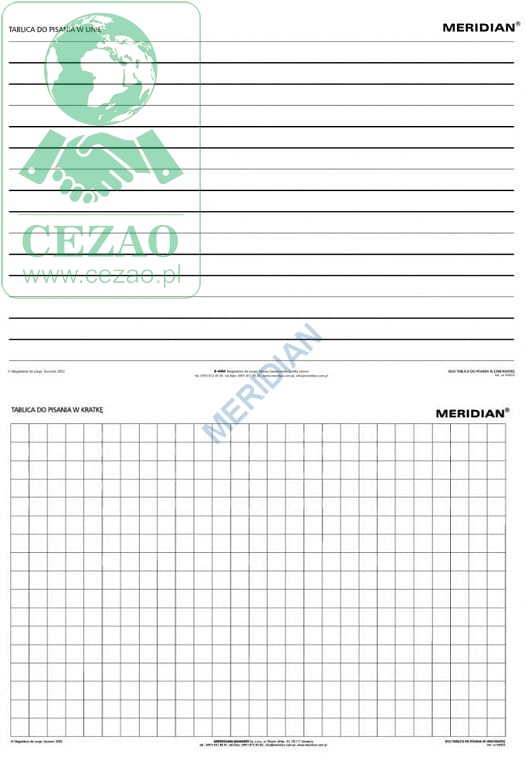 Ścienna szkolna tablica do pisania w trzy linie. Rewers - tablica w kratkę. Zmywalna.