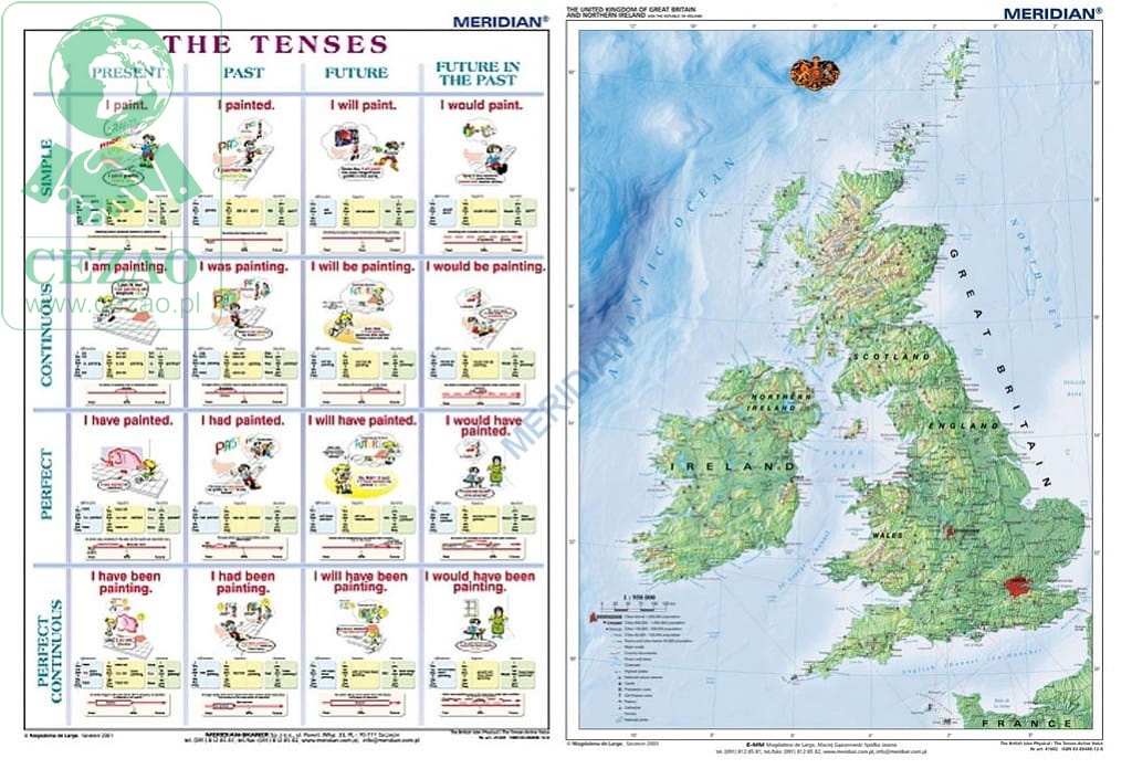 DUO The tenses active voice / The British Isles Physical - mapa ścienna i plansza gramatyczna 160x120