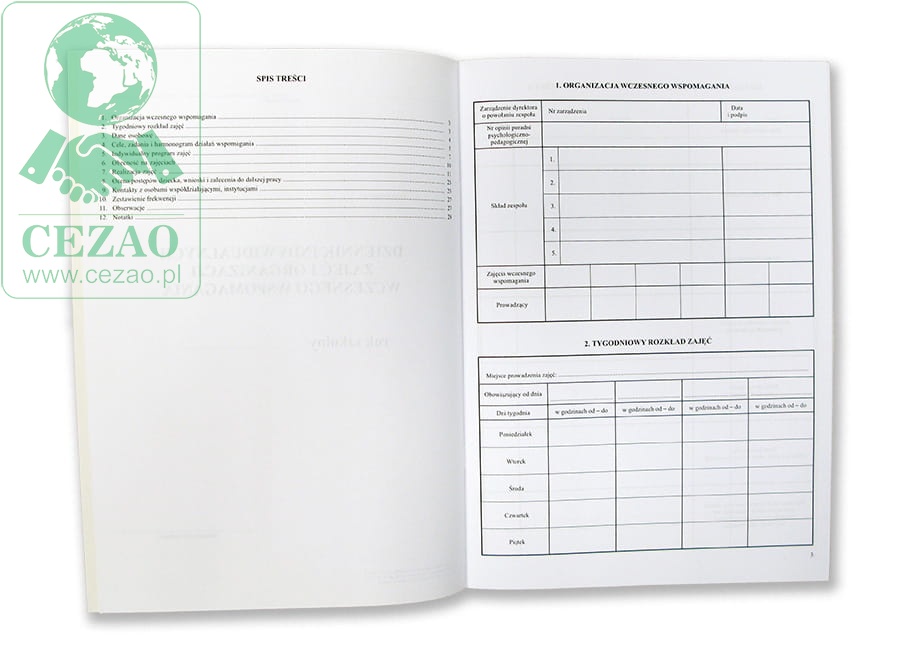 Dziennik indywidualnych zajęć i organizacji wczesnego wspomagania