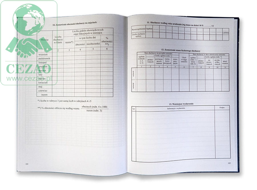 I/7 Dziennik zajęć szkoły zaocznej (192 stron, twarda oprawa) z listami obecności (podpisy słuchaczy)