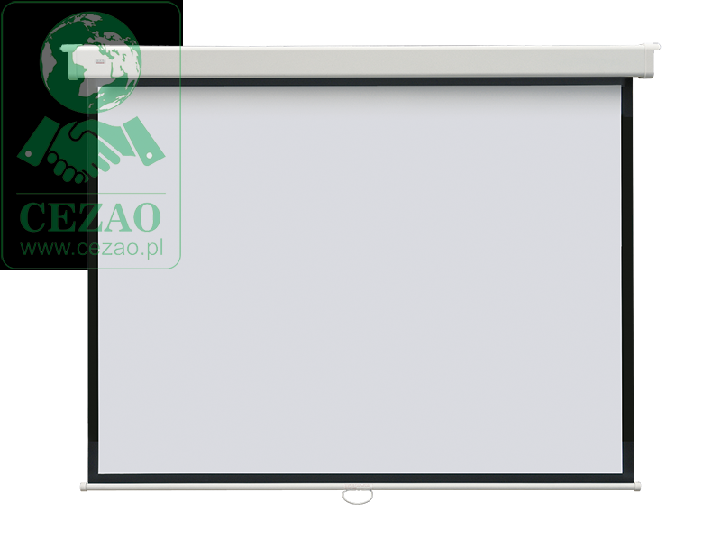 - Ekran projekcyjny, ręcznie rozwijany, łatwy do zamontowania na ścianie lub suficie.