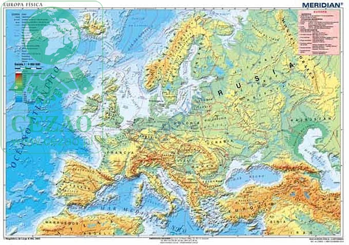 Europa física - mapa ścienna w języku hiszpańskim 160 x 120