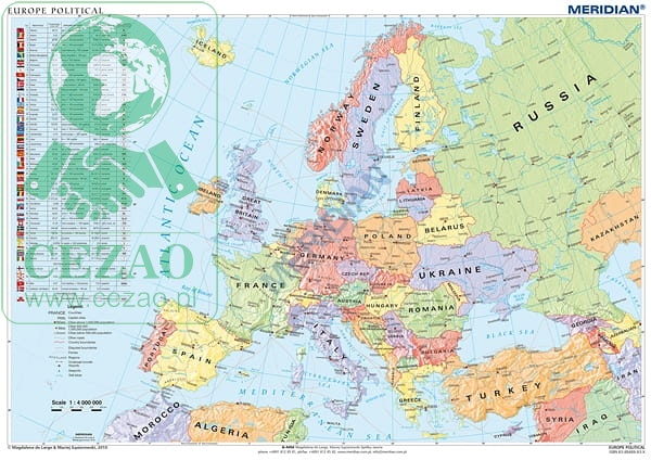Europe political map - mapa ścienna w języku angielskim 200 x 150