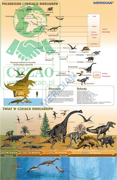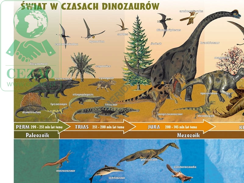 Ewolucja dinozaurów - świat w czasach wielkich gadów - ścienna plansza dydaktyczna 160x120