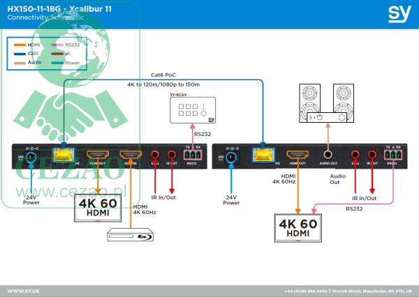 PoC - Tylko jeden zasilacz jest wymagany do zasilania zarówno Xcalibur 14, jak i wszystkich odbiorników Xcailbur 11, przy użyciu systemu PoC (Power over Cable). Nie ma potrzeby stosowania zasilacza po stronie odbiornika.