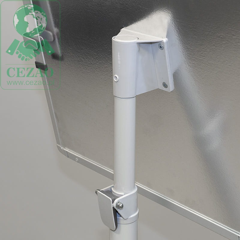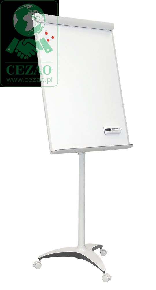 Powierzchnia suchościeralno-magnetyczna, lakierowana, o stałym kącie pochylenia 15°. Podstawa mobilna (kółka z blokadą). Konstrukcja nośna ze stali. Uniwersalny uchwyt zaciskowy do bloków A1 lub EURO. Regulowana wysokość flipcharta w zakresie 160-196 cm, dzięki łatwym w użyciu uchwytom zaciskowym.
