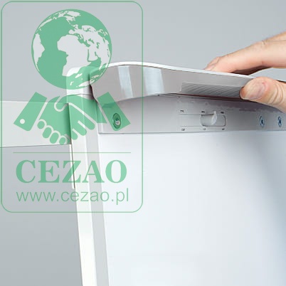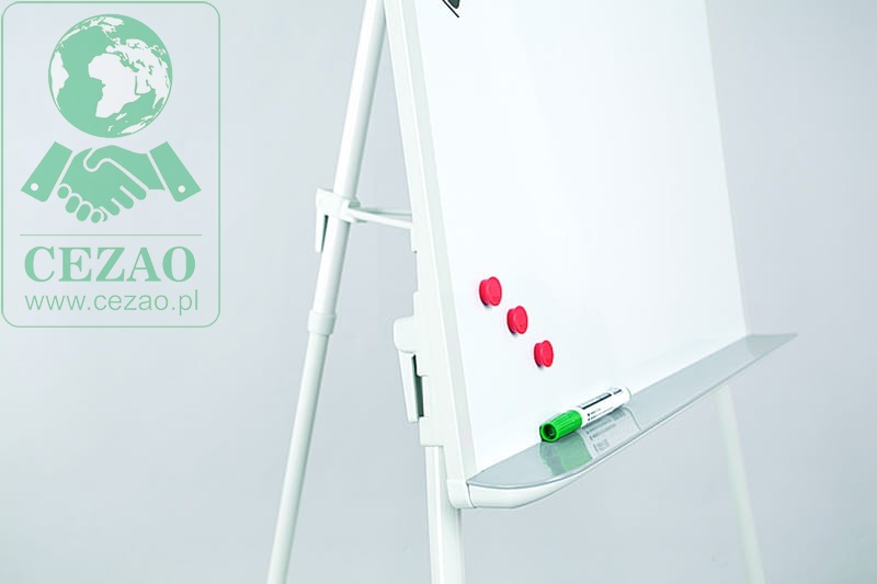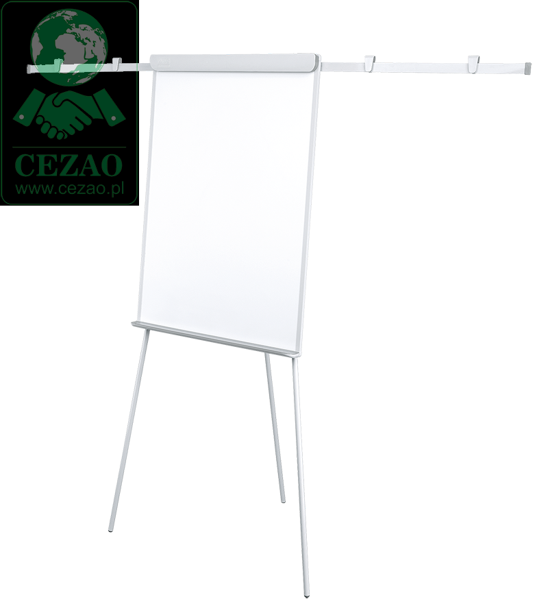 Powierzchnia suchościeralno-magnetyczna, lakierowana. Podstawa trójnożna. Konstrukcja nośna z aluminium. Uniwersalny uchwyt zaciskowy do bloków A1 lub EURO. Regulowana wysokość flipcharta do 186 cm, dzięki łatwym w użyciu uchwytom zaciskowym. 2 ramiona boczne rozkładane metodą „klik-klik”.