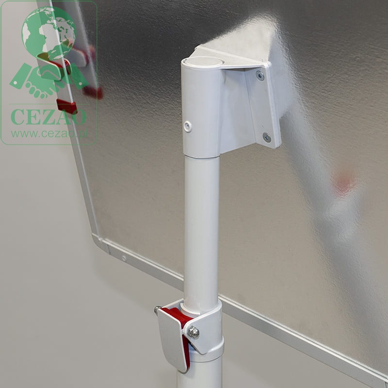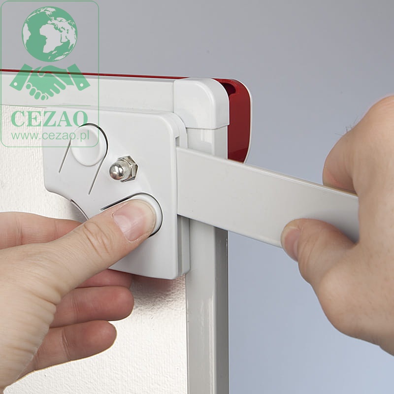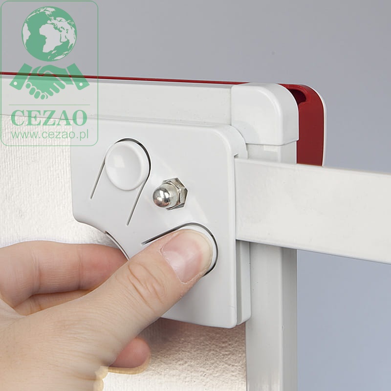 Tablica o wymiarach 70 × 100 cm, o stałym kącie pochylenia 15°; ze stylową półką na przybory. Powierzchnia suchościeralno-magnetyczna, lakierowana. Uniwersalny uchwyt zaciskowy do bloków pozwala na zawieszenie arkuszy A1 lub EURO. Stabilna konstrukcja nośna ze stali. Regulowana wysokość tablicy w zakresie 160-196 cm, dzięki łatwym w użyciu uchom zaciskowym. Podstawa jezdna, z kółkami z możliwością blokowania. Komfort użytkowania wzbogacony innowacyjnym rozwiązaniem rozkładania i chowania bocznych ramion metodą „klik-klik”.