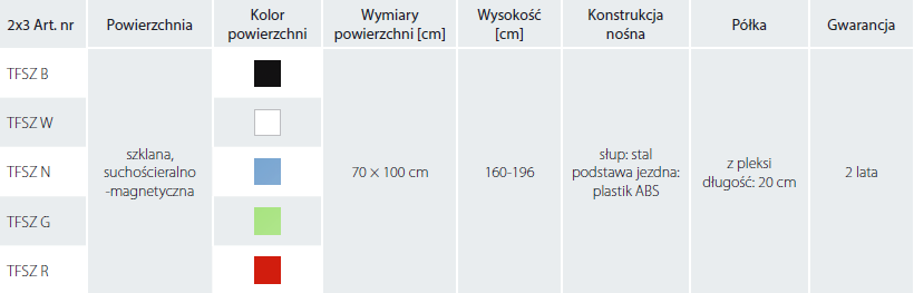 - Powierzchnia szklana o właściwościach magnetycznych i nasyconych kolorach.Stały kącie pochylenia 15 stopni.