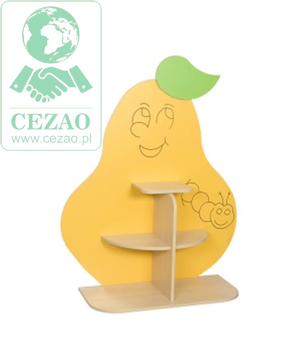 Kolorowa szafka w kształcie gruszki do przechowywania pomocy dydaktycznych, gier, książek, zabawek.
