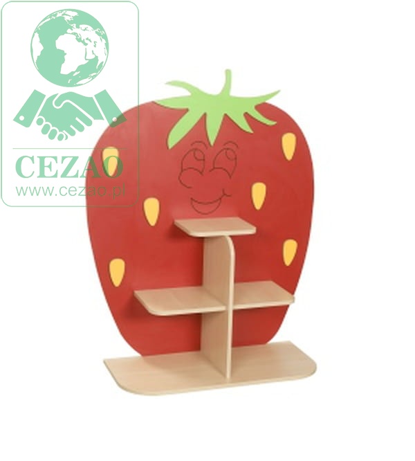 Kolorowa szafka w kształcie truskawki do przechowywania pomocy dydaktycznych, gier, książek, zabawek.