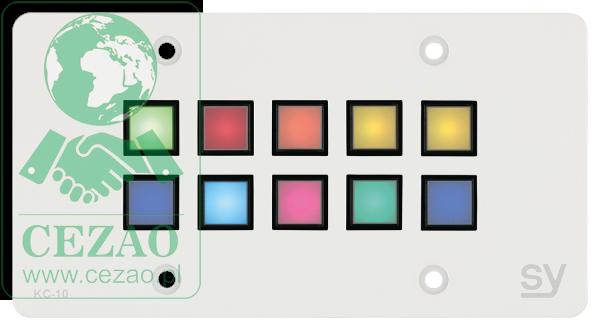 Przyciski z podświetleniem RGB- każdy przycisk można ustawić na określony rzeczywisty kolor i poziom intensywności, co pozwala na harmonizację grup przycisków wyświetlających subtelne zmiany. Płynne przejścia między stanami podświetlenia, tworzą bardziej wyrafinowane wrażenia dla użytkownika. Wszystkie przyciski można oznaczyć za pomocą dostarczonego arkusza legendy lub własnych etykiet i zabezpieczyć przezroczystymi nasadkami. Narzędzie do usuwania nasadek (CRT) jest dołączone do każdego kontrolera KC, aby pomóc w usuwaniu nasadek, jeśli zajdzie potrzeba wymiany etykiety w przyszłości.