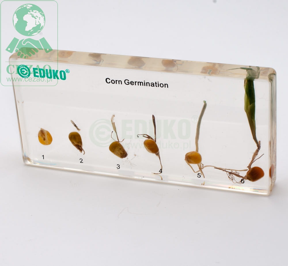 Preparat makroskopowy zatopiony w pleksi prezentuje poszczególne etapy rozwoju rośliny jednoliściennej na przykładzie kukurydzy. Rodzaj Kukurydza [Zea] ma 6 przedstawicieli naturalnie występujących w Ameryce Środkowej.
