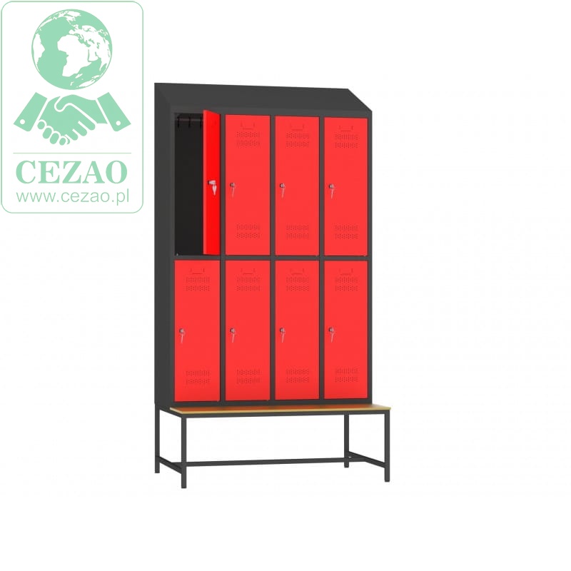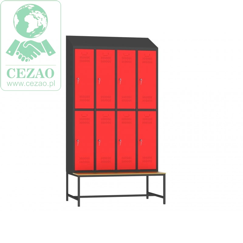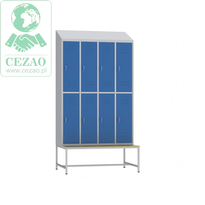 - Kategoria meble metalowe: szafa ubraniowa na ławce stałej i z daszkiem skośnym, szkolna, fitness, basenowa, socjalna, pracownicza
