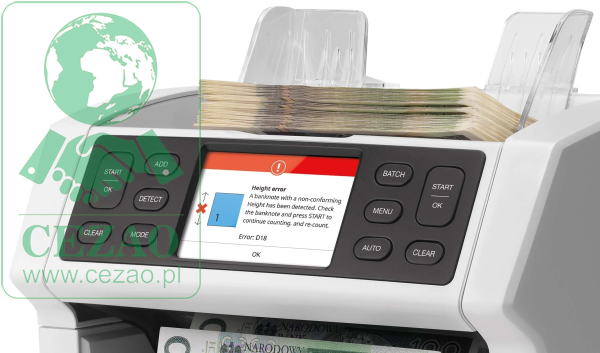 - Wyświetla szczegółowy komunikat po wykryciu podejrzanego banknotu