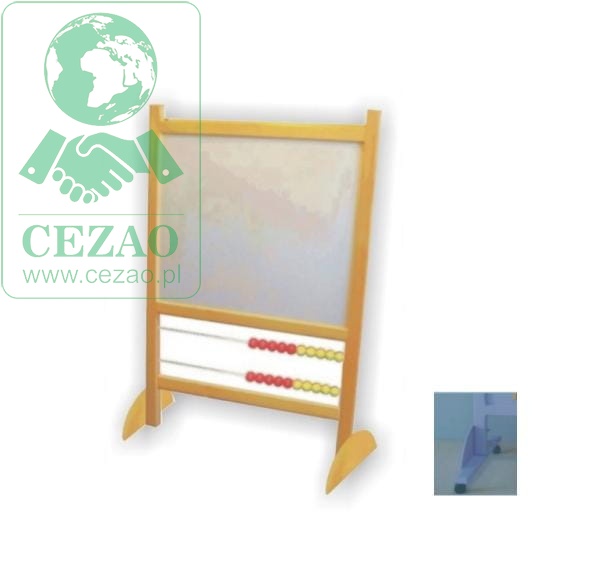 Tablica stacjonarna, służy jako tablica do pisania pisakiem suchościeralnym, tablica jest jednostronna, wykonana z drewna litego, lakierowana. Kółka obrotowe umożliwiają przesuwanie tablicy. Poniżej znajduje się liczyło w dwóch rzędach, na których znajdują się kulki drewniane żółto-czerwone o średnicy 34 mm