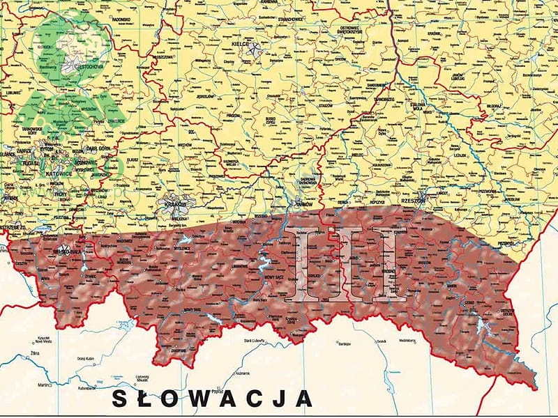 Mapa Polski z podziałem na strefy obciążenia wiatrem - mapa ścienna 130x120