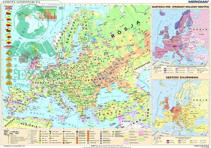 Mapa gospodarcza Europy - mapa ścienna 200x150