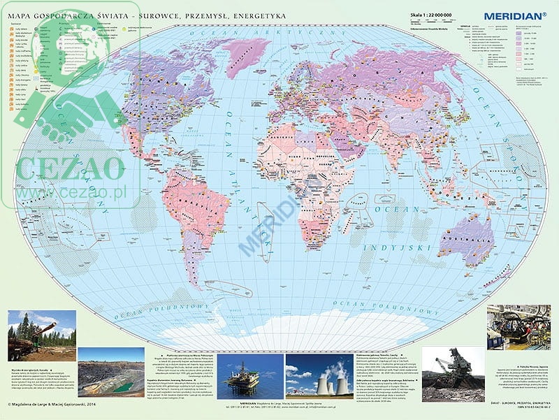 Mapa gospodarcza świata - surowce, przemysł i energetyka (2014) 200 x 150 cm
