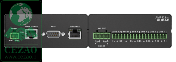 AMP523 to mini wzmacniacz stereofoniczny ze zintegrowaną internetową jednostką sterującą, wyposażony w cztery stereofoniczne wejścia liniowe i jedno zbalansowane wejście mikrofonowe z zasilaniem phantom. Jego moc wyjściowa wynosi 2 x 15 W. Proste i kompaktowe, ale wszechstronne funkcje sprawiają, że doskonale nadaje się do małych systemów głośnikowych wymagających kompaktowych i ekonomicznych rozwiązań audio, które są wszechstronne i łatwe do kontrolowania. Niektóre typowe zastosowania to sale lekcyjne, w których system audio będzie używany w połączeniu z tablicą inteligentną, biura i sale konferencyjne, w których muzyka powinna automatycznie przełączać się z muzyki w tle na mowę lub odtwarzanie po rozpoczęciu prezentacji, .... i wiele innych podobnych zastosowań.