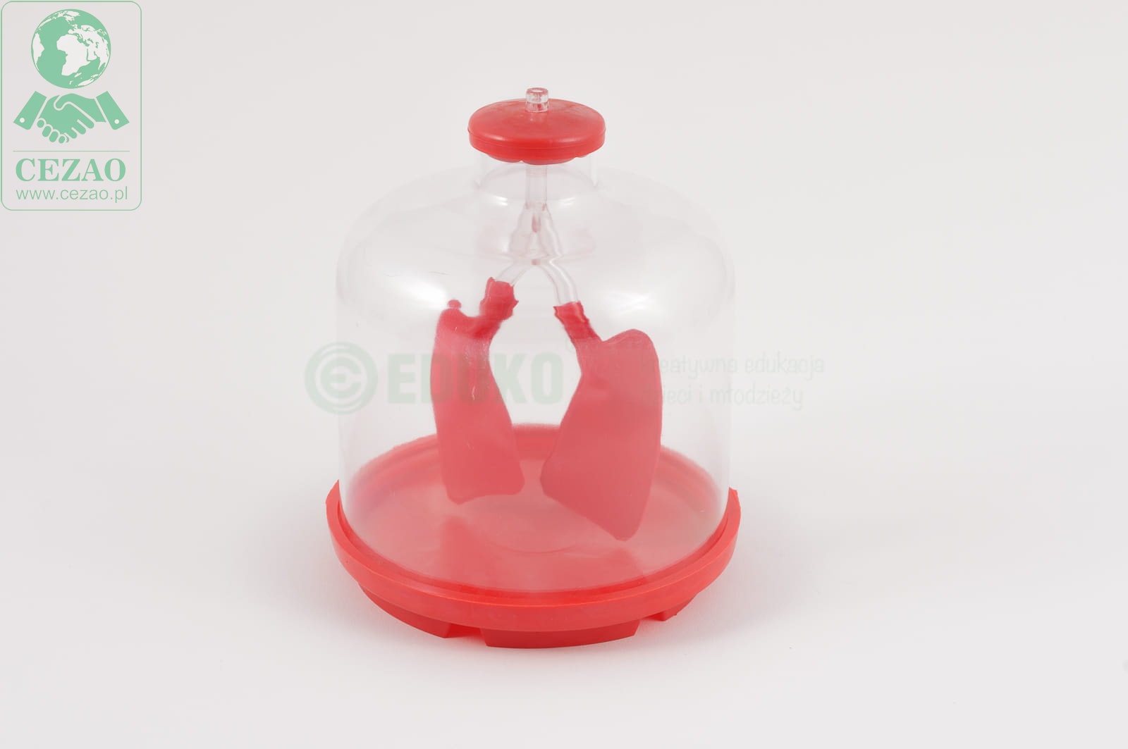 Dolna, czerwona pokrywa modelu pełni rolę przepony. Energiczne pociąganie za dolny uchwyt przepony symuluje proces oddychania, pokazuje proces napełniania się płuc powietrzem oraz ich unoszenie.
