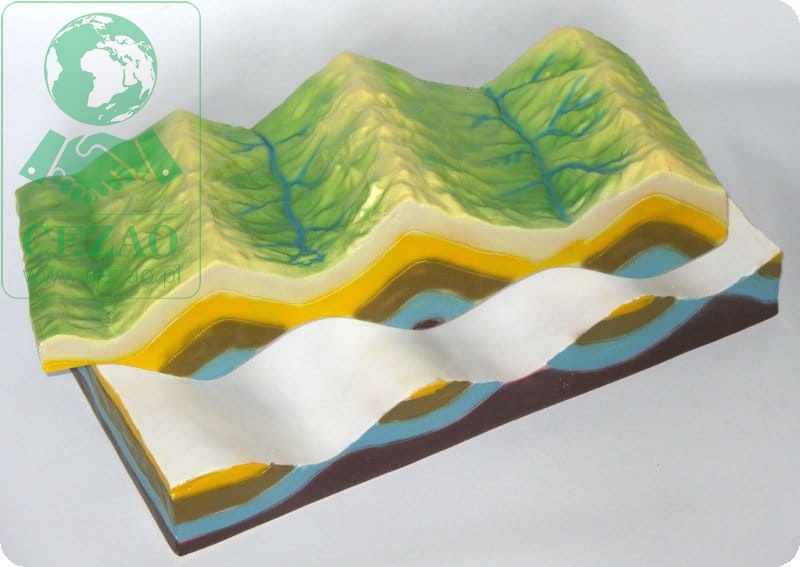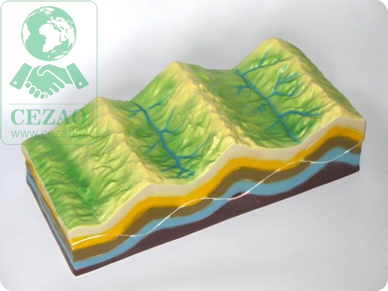 Ten znacznych rozmiarów, rozkładany model unaoczni młodszym uczniom rzeźbę powierzchni Ziemi i zainteresuje ich nie tylko opisem form geologicznych ale też genezą i procesem przekształceń tych form. Możliwość obserwacji i bezpośredniego zbadania pomocy dydaktycznej wykonanej z twrałego tworzywa zaktywizuje uczniów i utrwali ich wiedzę. Całkowite wymiary modelu: 45x20x17cm.