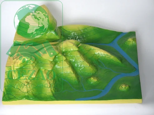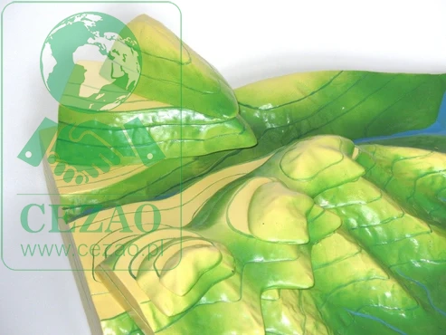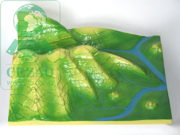Ten znacznych rozmiarów, rozkładany model unaoczni młodszym uczniom czym w kartografii są poziomice nazywane także w geodezji warstwicami. Nakładanie kolejnych "pięter" podzielonych cięciem poziomicowym zaktywizuje uczniów i utrwali ich wiedzę. Całkowite wymiary modelu: 56,5x43,5x18,5 cm.