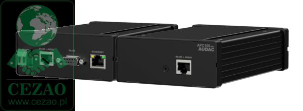 APC100 to moduł konfiguracyjno-sterujący, współpracujący z szeroką gamą „inteligentnych” urządzeń AUDAC – od systemów matrycowych przez pulpity pagingowe po panele ścienne. Wyposażyliśmy go w szereg różnych złączy komunikacyjnych, w tym: TCP/IP, RS-232 i RS-485, dzięki którym współpracuje z każdym „inteligentnym” urządzeniem podłączonym do instalacji, pełniąc rolę ogniwa łączącego wszystkie te elementy systemu. Znacznie ułatwia pracę instalatorów i oszczędza ich czas. W systemie, do którego włączono ten moduł, nawet złożone zabiegi konfiguracyjne i aktualizacje zajmują jedynie chwilę. Wygodnie i szybko pozwala on także wykonywać kopie zapasowe i duplikować zasoby. Ładowanie konkretnych plików – np. komunikatów głosowych lub screensaverów – wymaga wyłącznie modułu APC100 oraz komputera. Wewnętrzny zegar czasu rzeczywistego umożliwia synchronizowanie wyzwalanych czasowo zdarzeń w urządzeniach zewnętrznych (pod warunkiem ich zsynchronizowania z którymś z internetowych serwerów czasu).