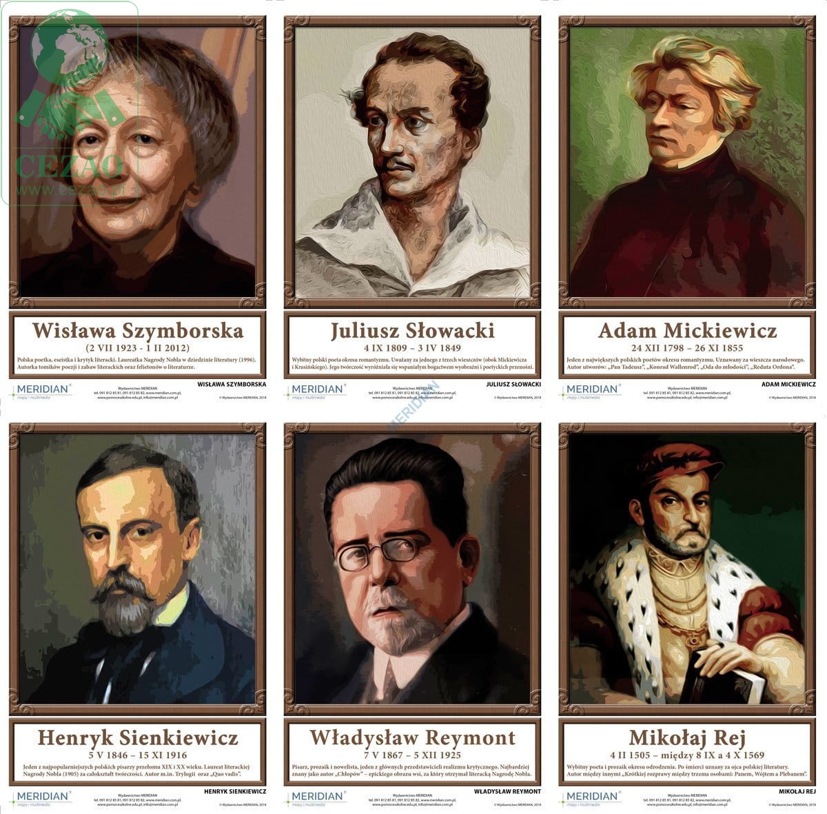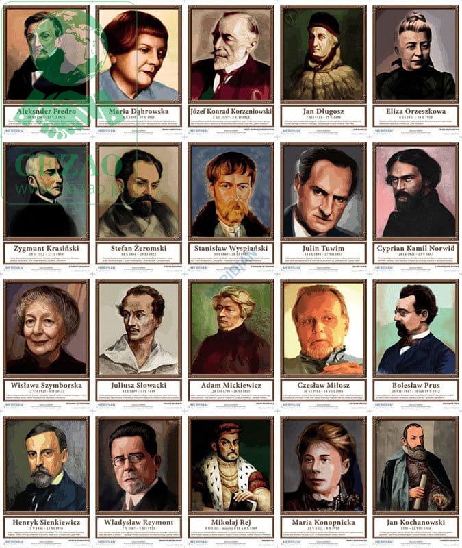 Portrety pisarzy polskich - komplet 21 plansz dydaktycznych