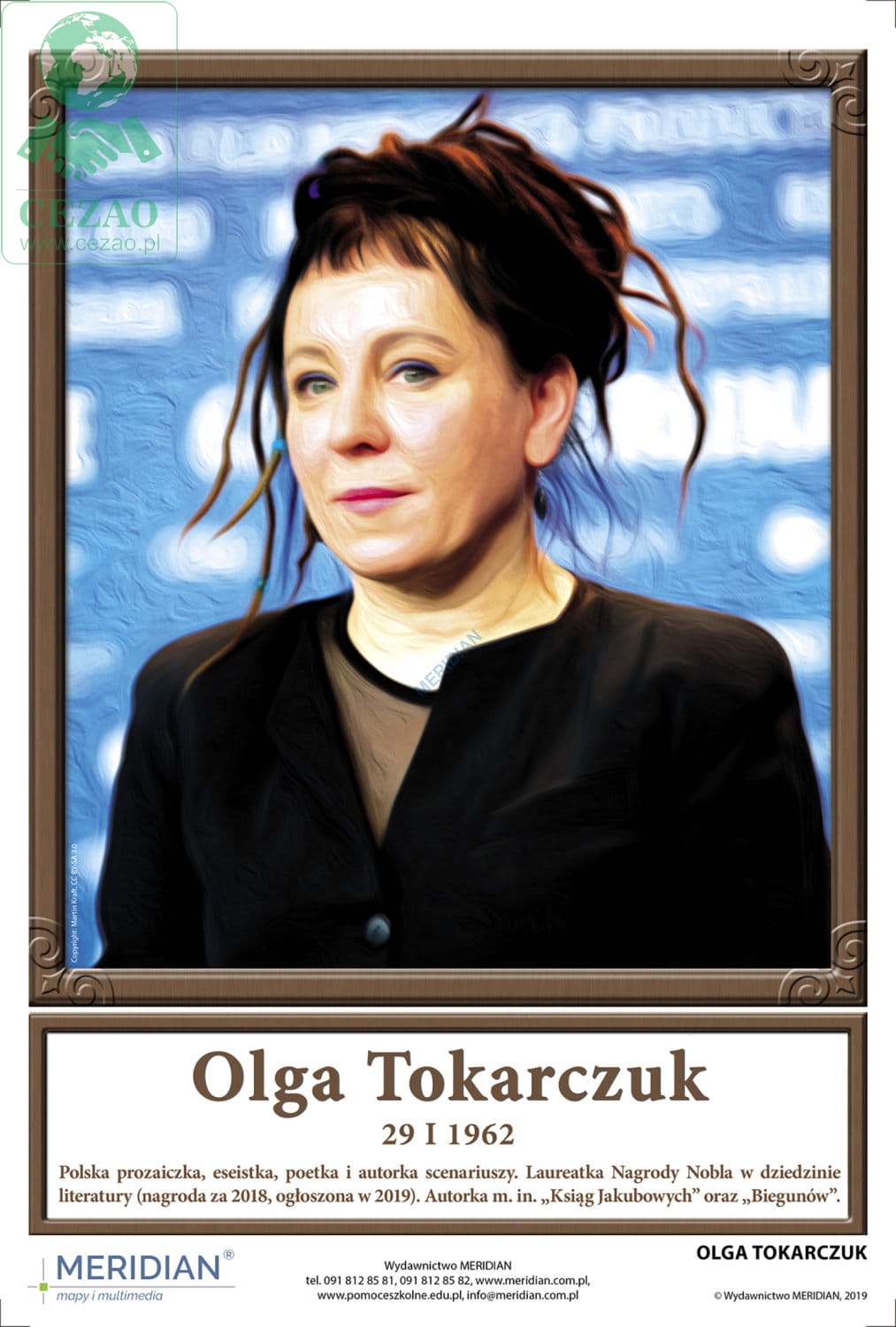 Komplet 21 plansz przedstawiający portrety pisarzy polskich, uwzględniający tegoroczną laureatkę Nagrody Nobla Olgę Tokarczuk.