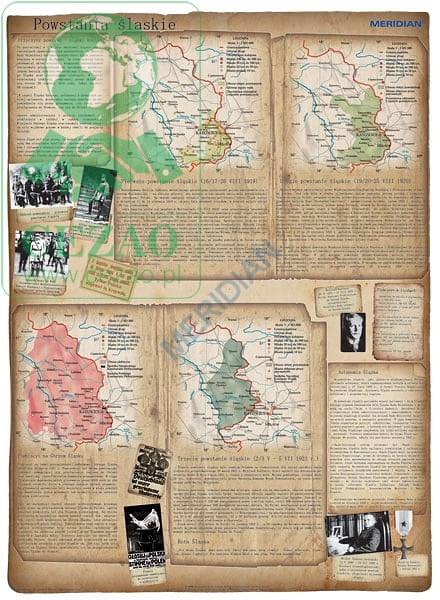 Ścienna mapa szkolna przedstawiająca w przystępny i czytelny sposób skomplikowany etap kształtowania się II Rzeczpospolitej oraz przynależności państwowej Górnego Śląska. Mapa podzielona jest na cztery części poświęcone kolejnym trzem powstaniom śląskim oraz plebiscytowi na Górnym Śląsku. Wydarzenia te miały ogromne znaczenie dla historii polskiego XX-lecia międzywojennego, zarówno w aspektach politycznych, jak i gospodarczych. Osobna część omawia kwestie autonomii śląskiej. Mapa wzbogacona jest opisami poszczególnych zagadnień, a także bogatym materiałem fotograficznym oraz ilustracyjnym.