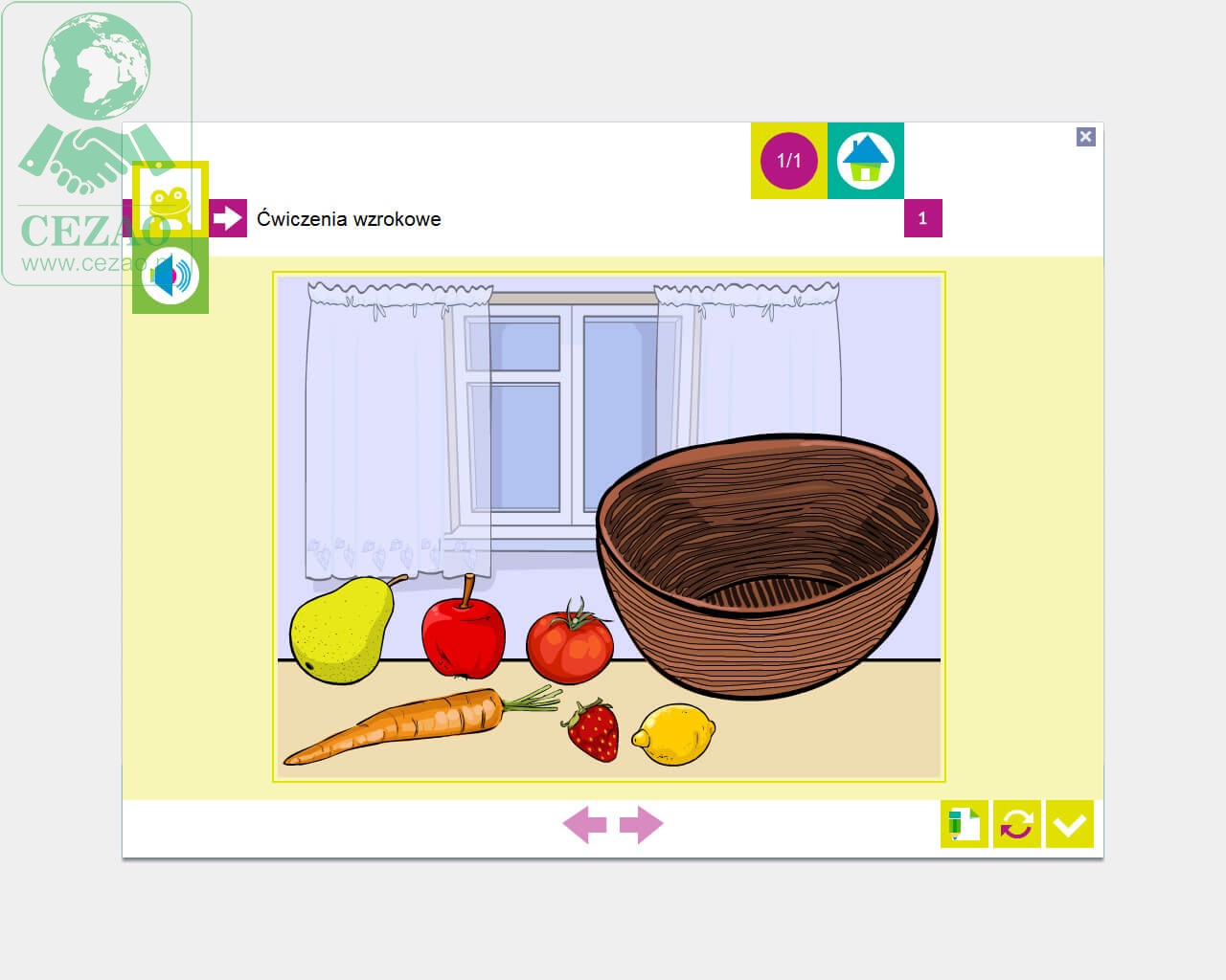 - percepcja wzrokowa - 22 ćwiczenia;
