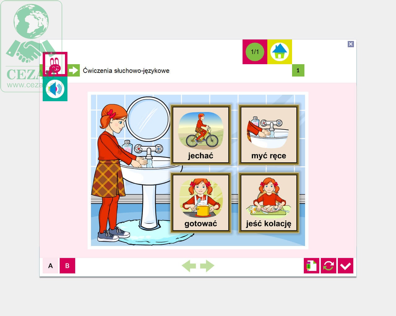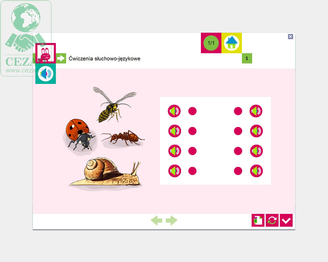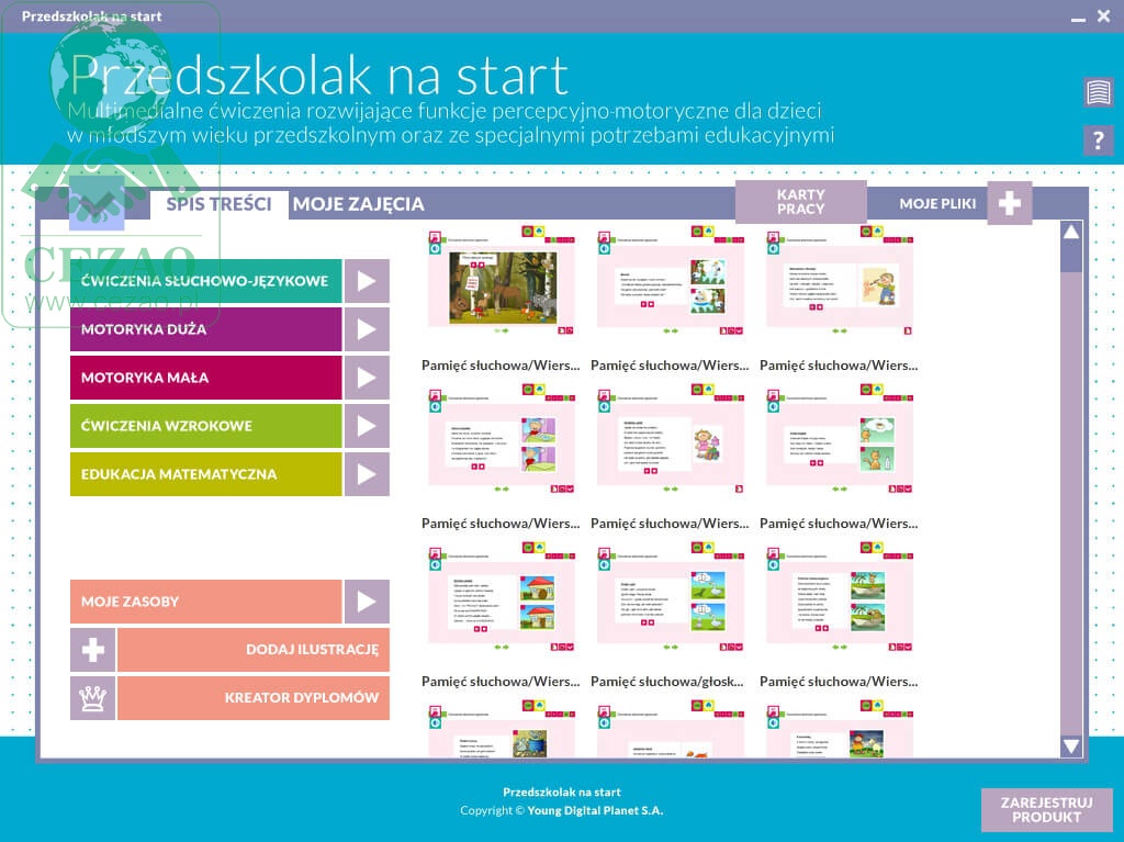 - percepcja słuchowa i umiejętności językowe - 60 ćwiczeń;