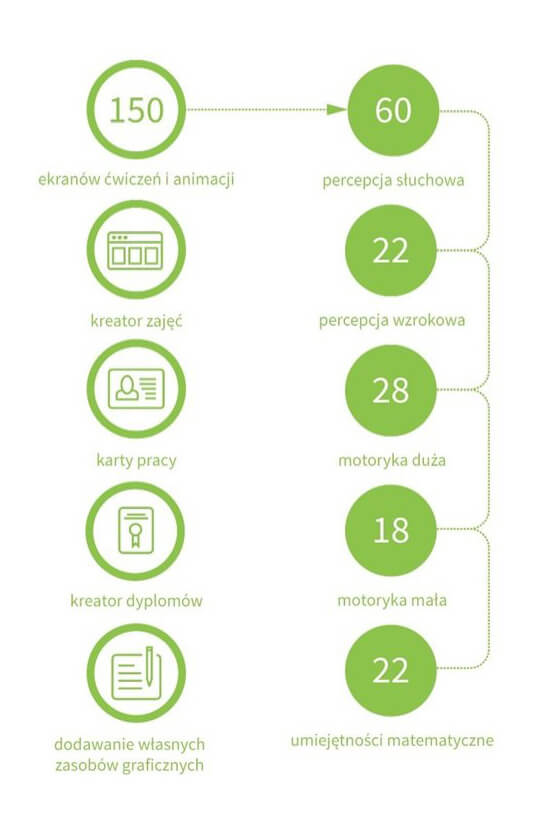 - 150 ćwiczeń dedykowanych na tablicę interaktywną,
