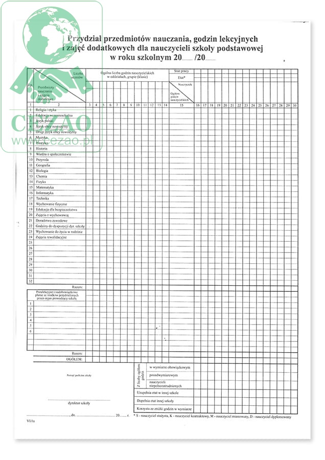 Przydział przedmiotów nauczania SP