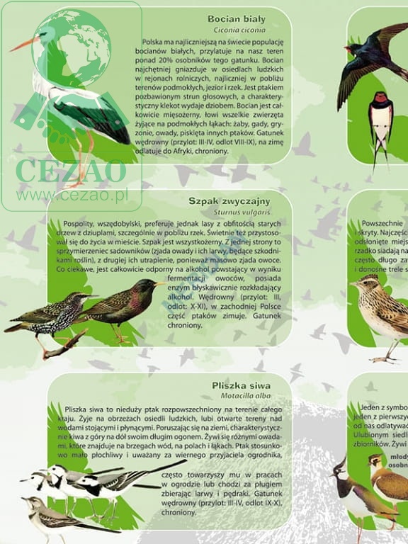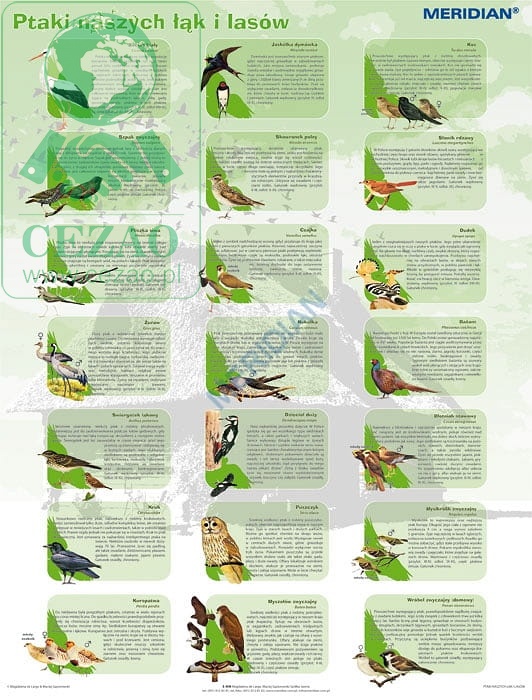 Ptaki naszych łąk i lasów - ścienna plansza dydaktyczna 120x90