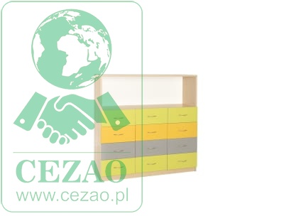 Regał występuje w  kolorach: buk, modrzew, biel i klon.