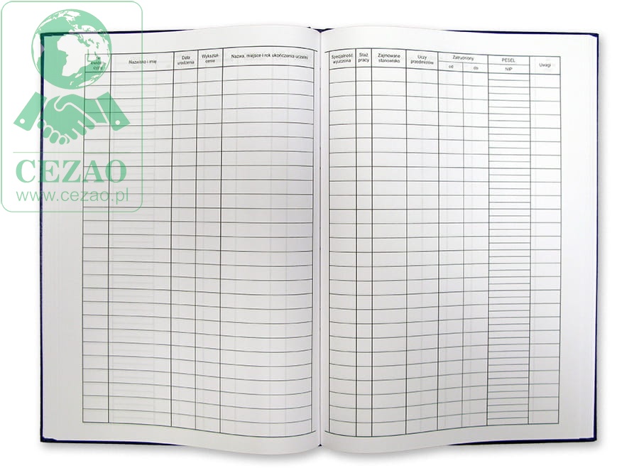 Rejestr zatrudnionych nauczycieli, twarda skóropodobna oprawa, A4 (192 str.)