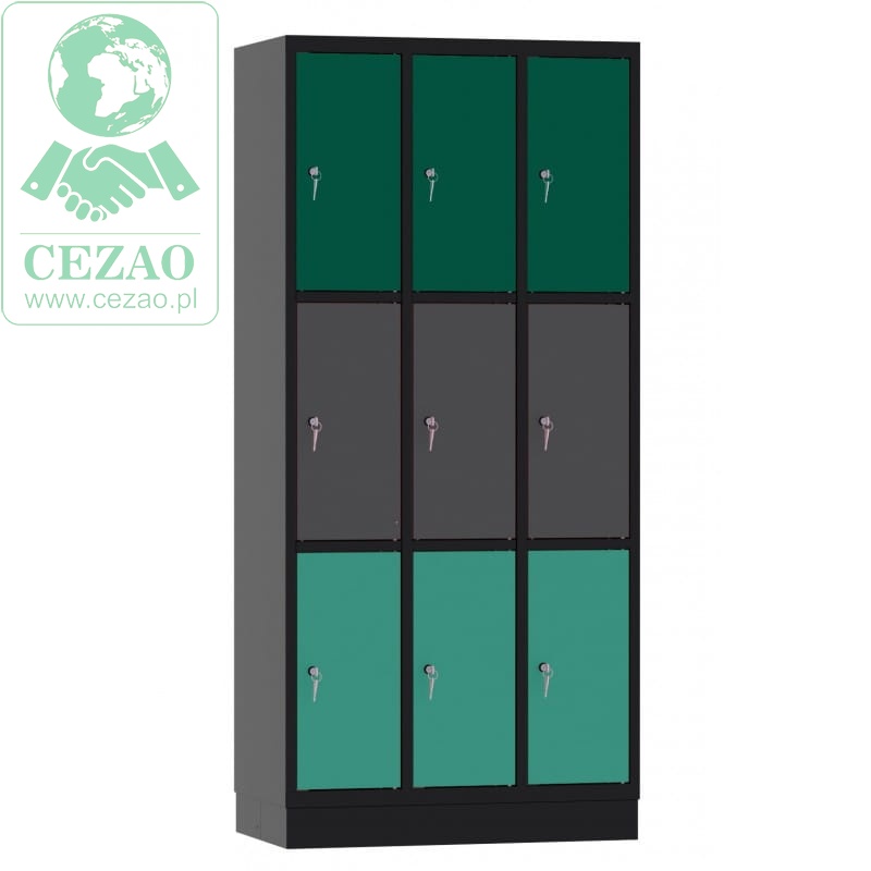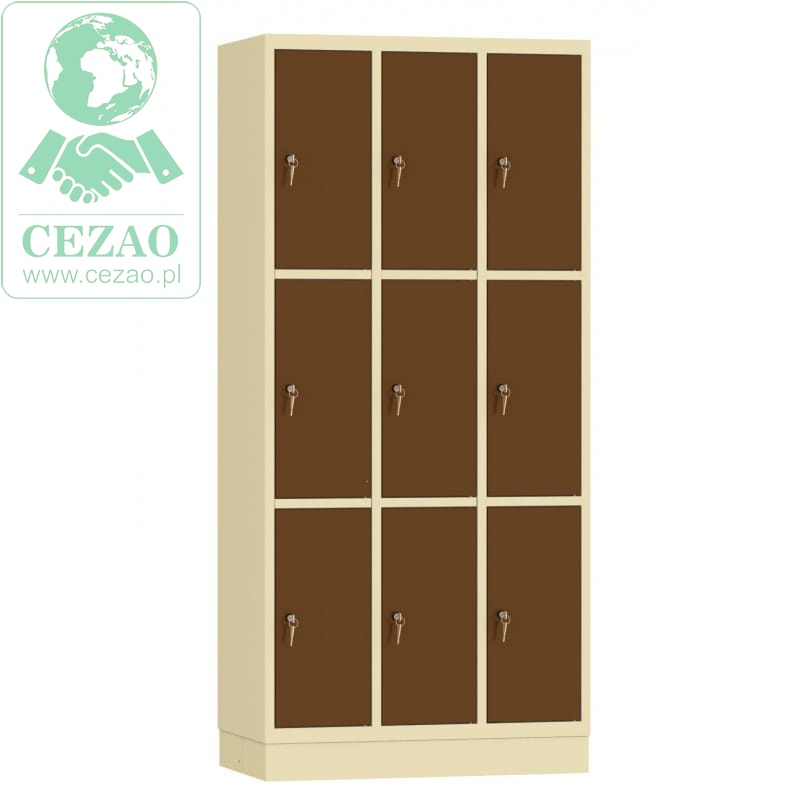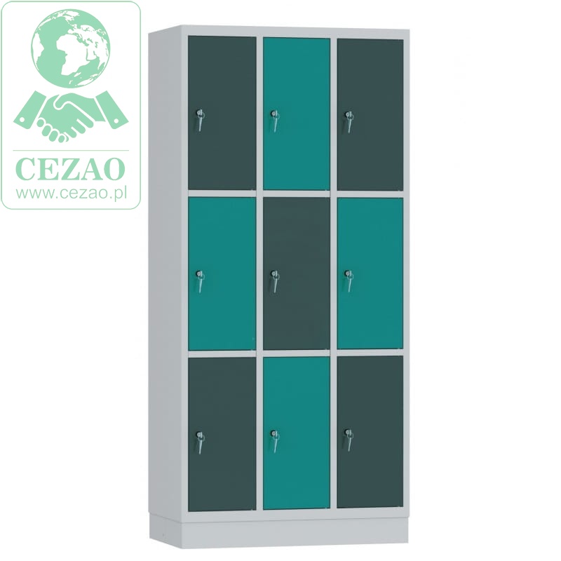 - Opis: solidna konstrukcja stalowa z wysokiej jakości blachy europejskich producentów, szafa dziewięciodrzwiowa, drzwi z profilem wzmacniającym, osadzone na ukrytych zawiasach, cokół o wysokości 100mm, łatwość utrzymania czystości dzięki gładkiej, jednolitej powierzchni
