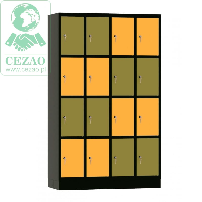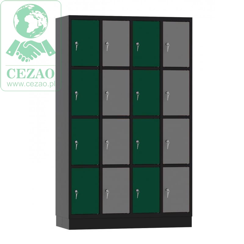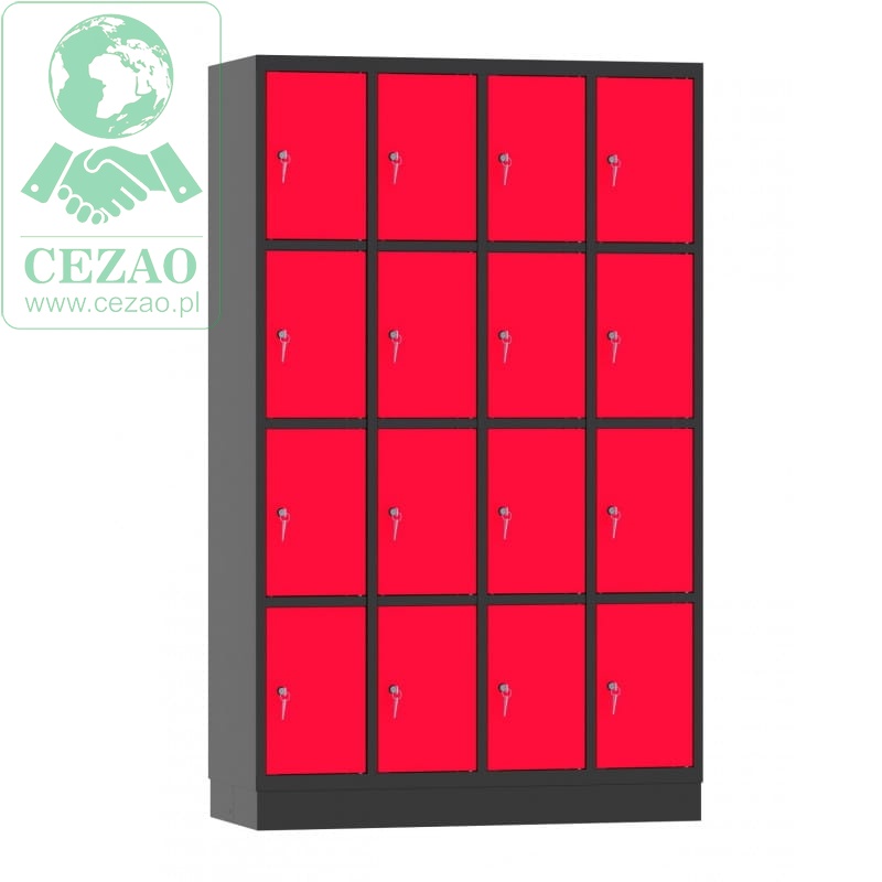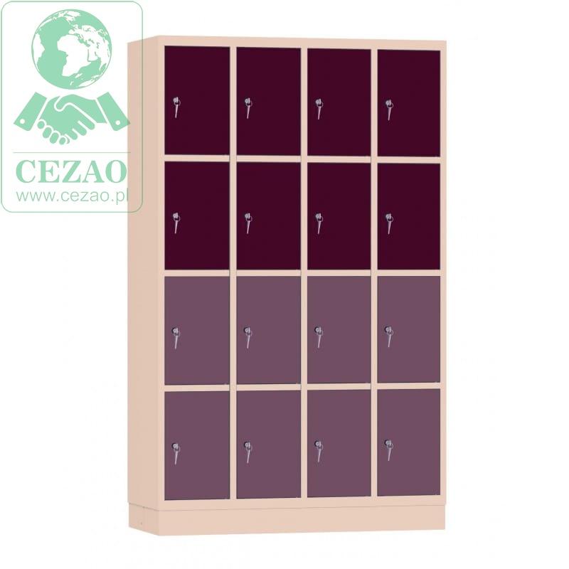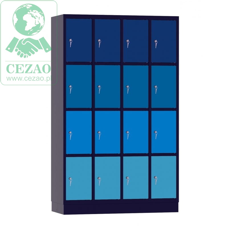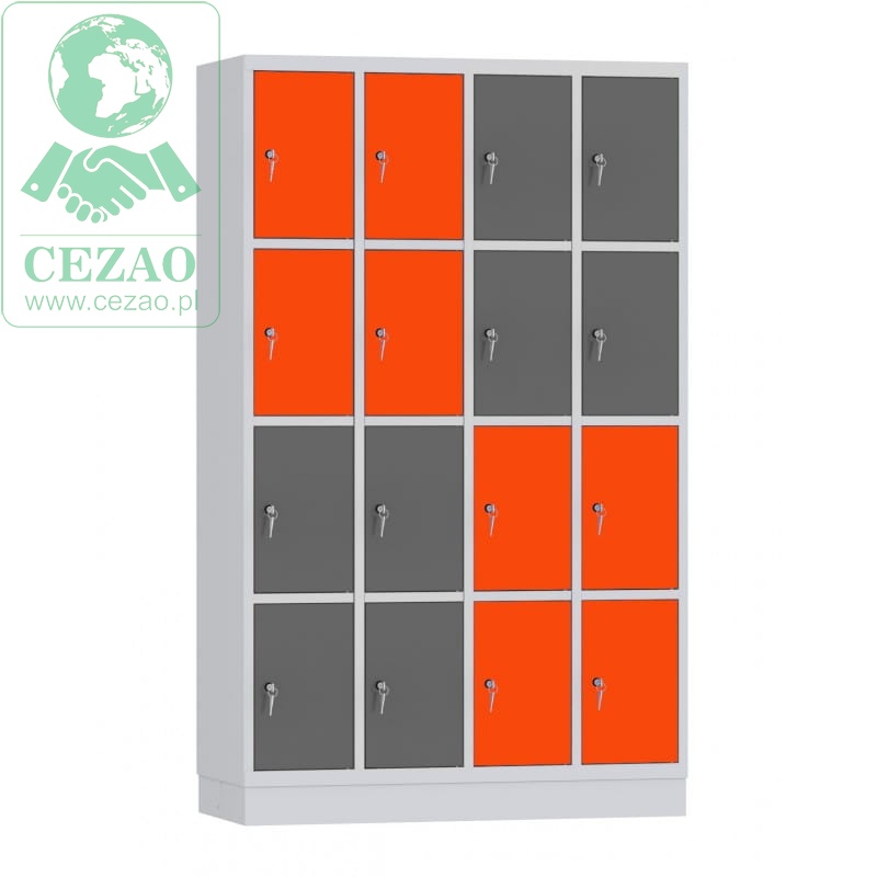 - Opis: solidna konstrukcja stalowa z wysokiej jakości blachy europejskich producentów, szafa szesnastodrzwiowa, drzwi z profilem wzmacniającym, osadzone na ukrytych zawiasach, cokół o wysokości 100mm, łatwość utrzymania czystości dzięki gładkiej, jednolitej powierzchni