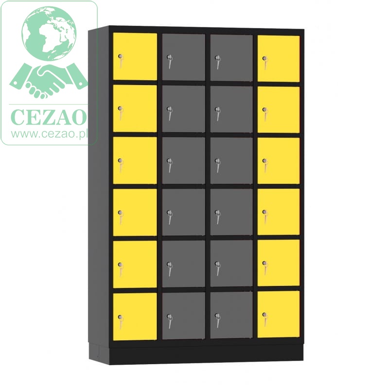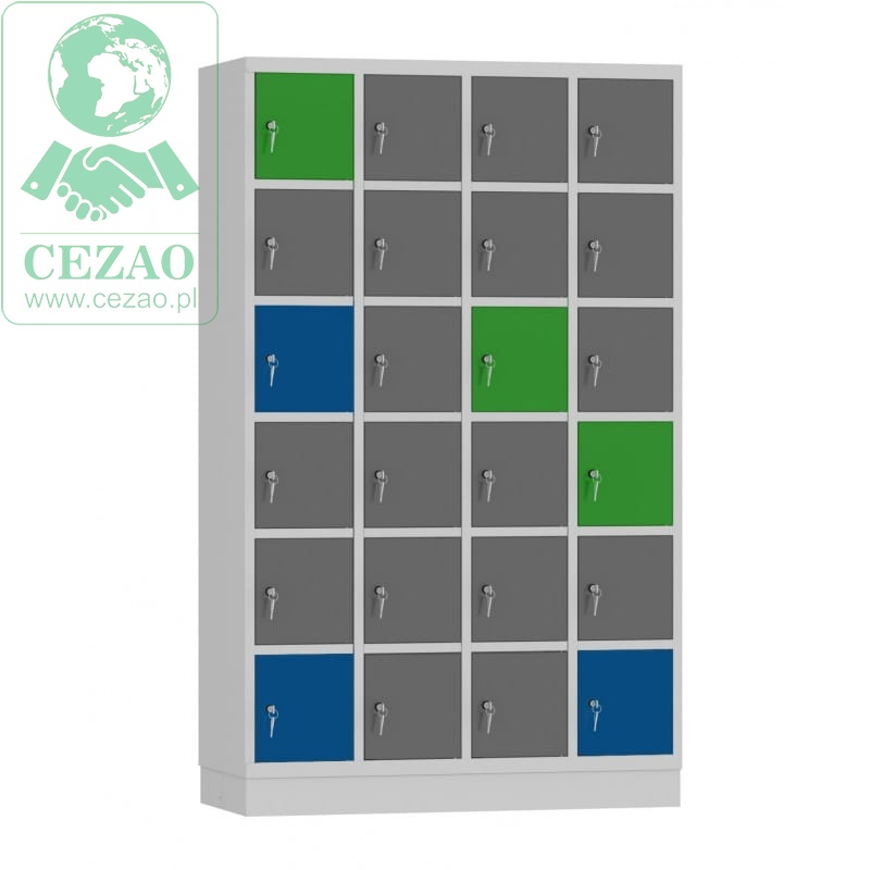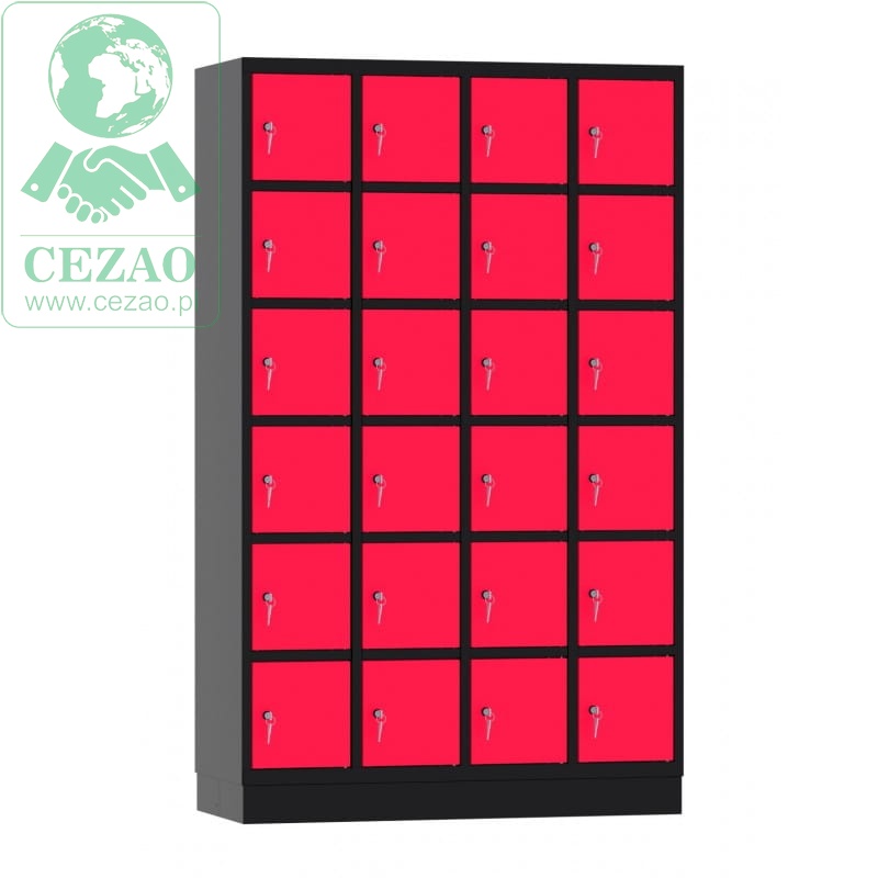 - Opis: solidna konstrukcja stalowa z wysokiej jakości blachy europejskich producentów, szafa dwudziestoczterodrzwiowa, drzwi z profilem wzmacniającym, osadzone na ukrytych zawiasach, cokół o wysokości 100mm, łatwość utrzymania czystości dzięki gładkiej, jednolitej powierzchni