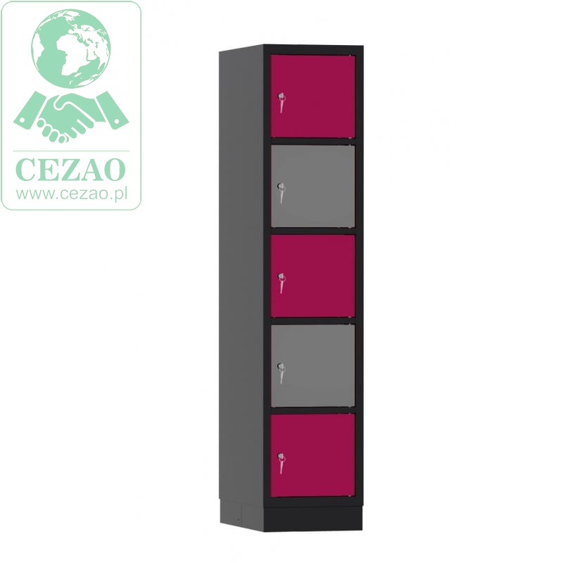 - Opis: solidna konstrukcja stalowa z wysokiej jakości blachy europejskich producentów, szafa pięciodrzwiowa, drzwi z profilem wzmacniającym, osadzone na ukrytych zawiasach, cokół o wysokości 100mm, łatwość utrzymania czystości dzięki gładkiej, jednolitej powierzchni