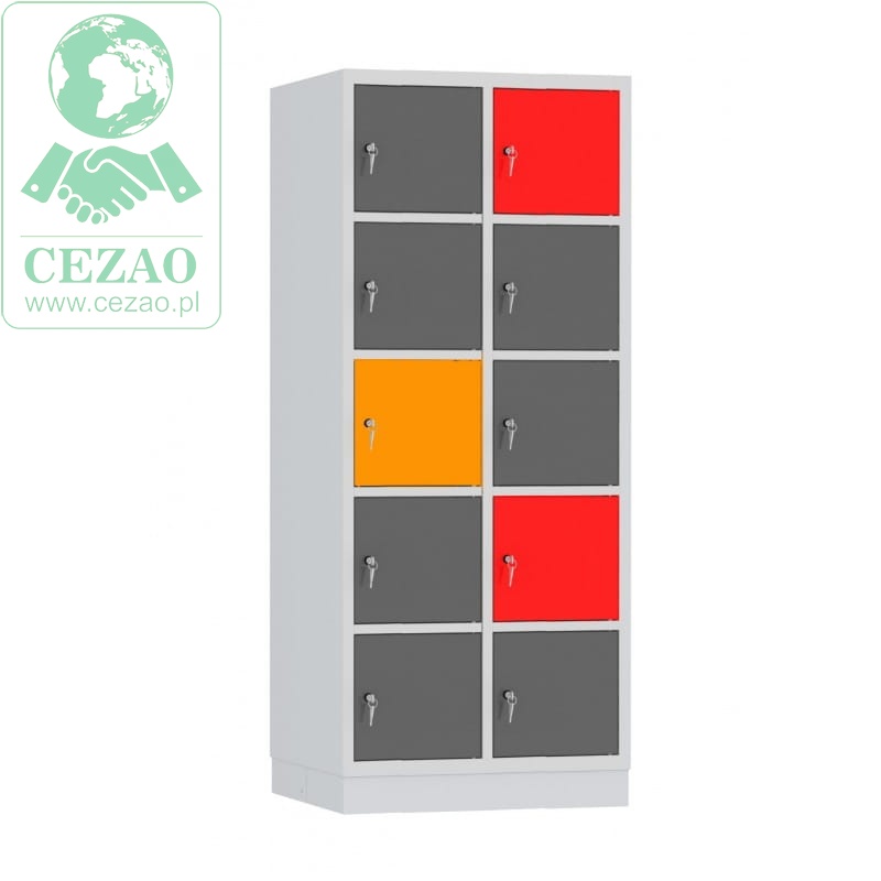 - Opis: solidna konstrukcja stalowa z wysokiej jakości blachy europejskich producentów, szafa dziesięciodrzwiowa, drzwi z profilem wzmacniającym, osadzone na ukrytych zawiasach, cokół o wysokości 100mm, łatwość utrzymania czystości dzięki gładkiej, jednolitej powierzchni