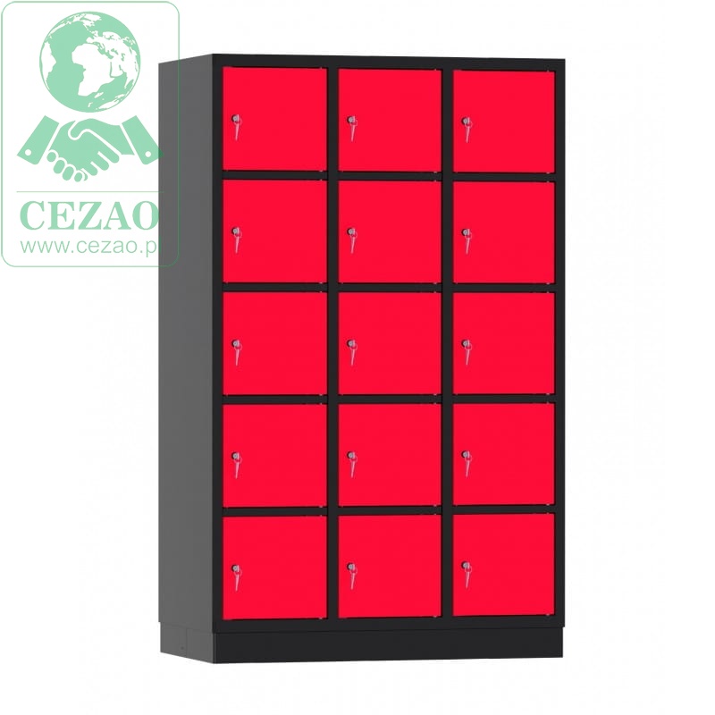 - Opis: solidna konstrukcja stalowa z wysokiej jakości blachy europejskich producentów, szafa piętnastodrzwiowa, drzwi z profilem wzmacniającym, osadzone na ukrytych zawiasach, cokół o wysokości 100mm, łatwość utrzymania czystości dzięki gładkiej, jednolitej powierzchni